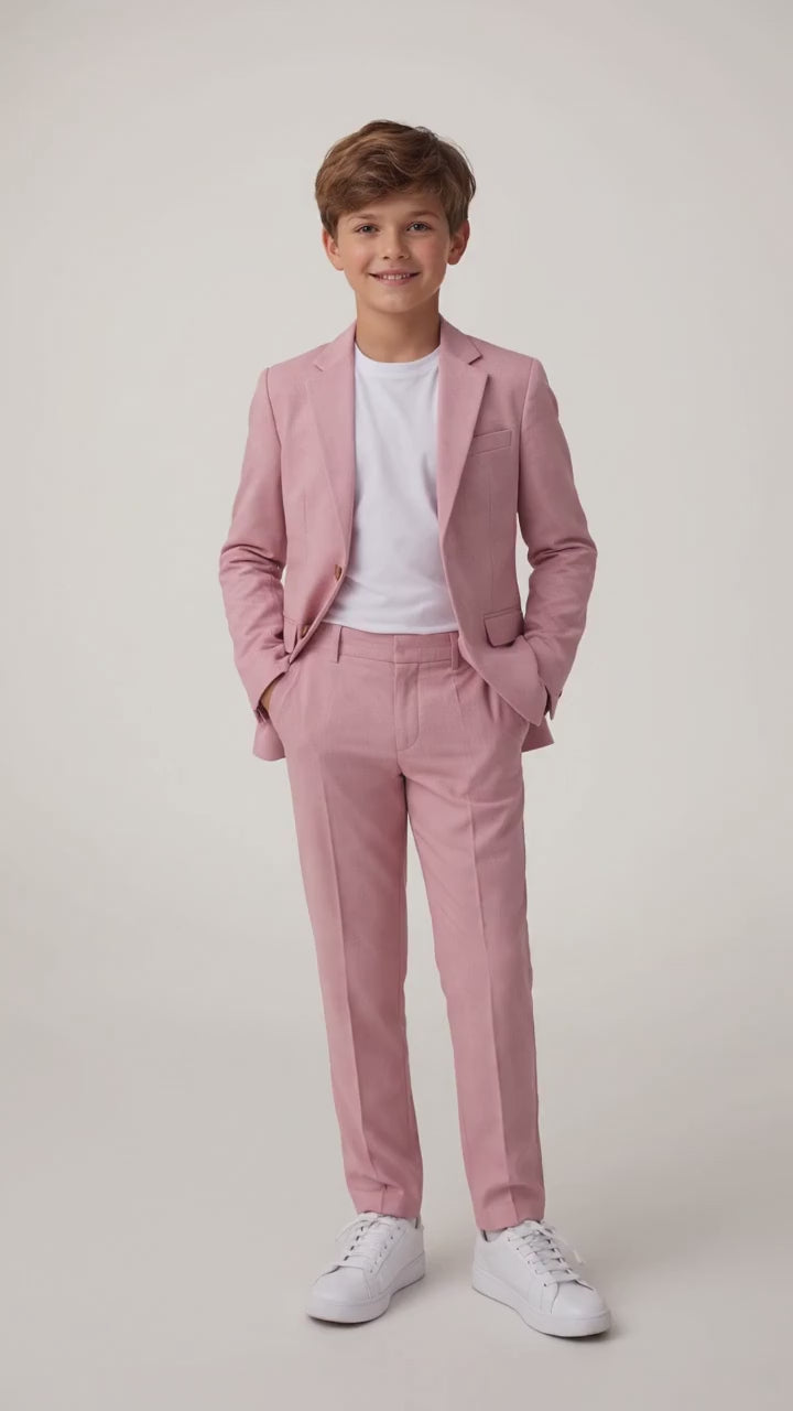 The Pacific Blue Stretchy Mod Suit combines sharp tailoring with kid-approved comfort, featuring a polished jacket with built-in pocket square and stretch skinny pants with an adjustable waist for all-day ease.